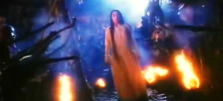Dashes of Spielbergian ambition dot The Bride with White Hair’s visual texture, with the Indian styling of Ji’s infernal cult, massed in a chanting relish of evil, suggesting the influence of Indiana Jones and the Temple of Doom (1984), as well as a hint of Bollywood flavouring. But with its colour-drenched frames, dramatically tilted camera angles, and the eerily beautiful, yet lightning-paced images of the warriors bounding through fog-shrouded forests, Yu, like Johnny To’s wild The Heroic Trio from the same year, effectively synthesises Hollywood high style with the traditional effects of wu xia cinema. Yu also employs a headlong rush of narrative clearly learnt from Tsui Hark, and he’s not terribly interested in developing with clarity a political subplot involving General Wu San-Kuei (Eddy Ko), an officer Zhuo had known since childhood who sets out to become Emperor, adding to a slightly diffuse quality to the narrative that is the film’s biggest fault. But the blend of fantasy imagery, and a coherent use of that imagery’s protean possibilities for investigating complex aspects of the psyche, help the film earn comparison with the classical mythology it evokes.