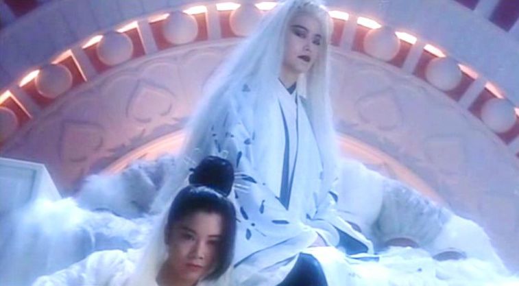 The Bride with White Hair films share common traits with Hong Kong cinema, from the style of humour and character interaction that seem distinctly more naïve than what we’re used to in Western cinema, to the fluent, utterly confident sense of storytelling that seems at once beautifully simple and irreducibly sophisticated, moving at a pace that forces the viewer to keep up. Both episodes soar to rare heights of stoked emotion and drenched décor effects, but it’s the way their inflated set-pieces revolve around metaphorical versions of everyday travails that really drives them. It’s most marked in Nichang’s singular insistence that Zhuo trust her, a key component of any adult relationship, made here to hinge on an act of mass murder and magical shape-shifting. But likewise, Zhuo’s chafing against the authoritarianism and clannish narrowness of Chung Yuan life evokes any kind of discomfort in imposed social roles.
