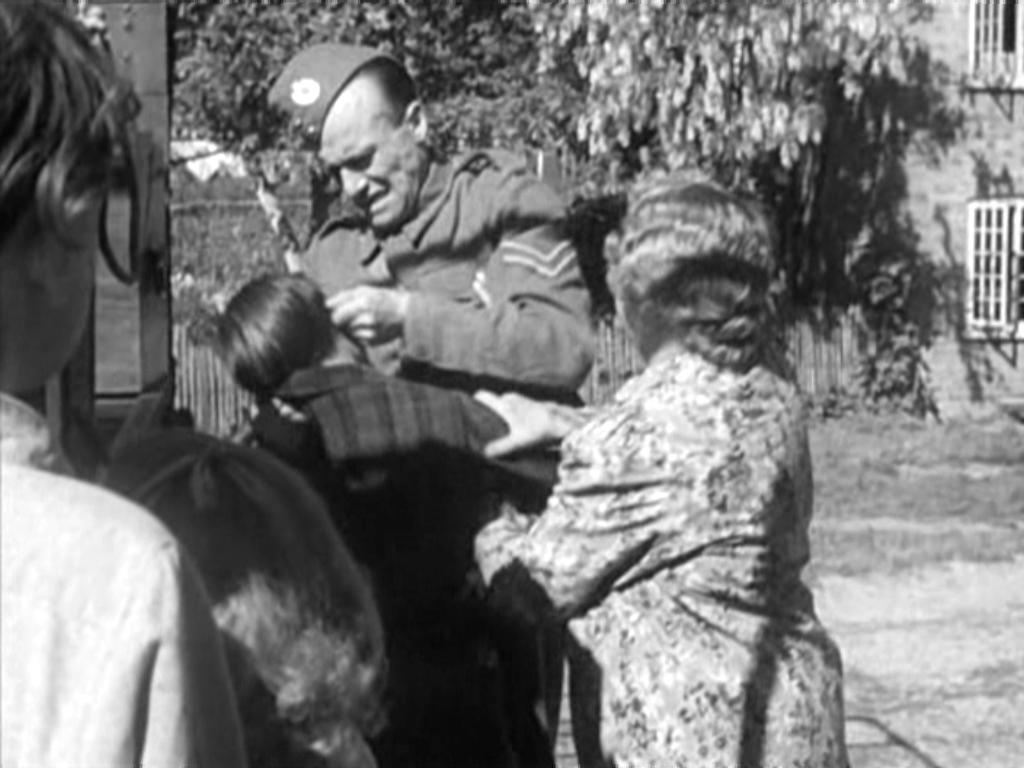 The opening scenes carefully, but seemingly casually, lay out the persons and personas of the villagers as the strangers come into their midst: Hefty, cheery, local post office manager and telephone exchange operator Mr. Collins (Muriel George) and her shopgirl Daisy (Patricia Hayes); young sailor Tom Sturry (Frank Lawton) and his bride-to-be Peggy (Elizabeth Allan), a member of the Land Army along with Ivy Dawking (Thora Hird), charged with delivering milk in the locality; and hale, bossy lady of the local manor, Mrs. Fraser (Marie Lohr), who gets miffed when she finds out the local vicar, Ashton (C.V. France), and his spinster daughter Nora (Valerie Taylor) have beaten her to the trump of billeting the detachment’s CO. Nora has a secret crush on Oliver Wilsford (Leslie Banks), the commander of the local Home Guard, who liaises between the soldiers and the townsfolk, and, with his fellow Home Guard officer Harry Drew (Ellis Irving) from the next village of Upton, shows them the layout of the town’s defences. Of the town’s troupe of evacuee children, George Truscott (Harry Fowler) is the most accomplished scamp, having made friends with Bill Purvis (Edward Rigby), the accomplished local poacher. These characters and many others all have a part to play in the oncoming battle.