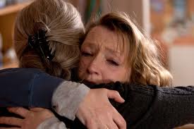 A deeply pessimistic note is set during the film’s prologue. A very sour-faced woman (Imelda Staunton) is having trouble sleeping and has gone to her local clinic for some sleeping tablets. Tanya (Michele Austin), the pregnant doctor tending to her, sees her obvious anger and depression. Tanya writes her a short-term prescription, but suggests she see a counselor at the clinic to get at the underlying cause of her sleeplessness. The counselor turns out to be Gerri. Gerri’s affinity for helping depressives may explain why she and Mary, an administrative assistant at the clinic, have remained friends for 20 years, all through Mary’s financially ruinous divorce and long-term affair and break-up with a married man. But Gerri has an energetic, partying streak in her, as evidenced by a seven-month trip she and Tom took from Australia back to England early in their lives and some hell-raising she remembers when talking with Ken; in the early years of their friendship, Mary would have been a natural fit for Gerri, and their bond seems genuine.