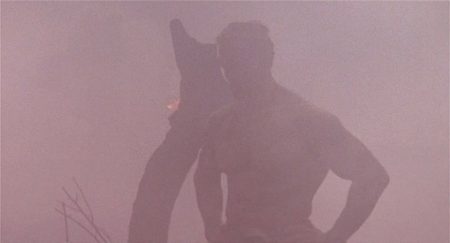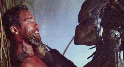 Dutch’s disarming of the Predator in this regard stirs the Predator’s own pride, inspiring it to strip off its weaponry and armour and meet Dutch on exactly the same level of pure physical force and guile. McTiernan’s immediate follow-ups, Die Hard and The Hunt for Red October, would both revolve around conflicts defined by arts of eluding and utilising landscape, but which eventually devolve eventually into traditional tests of strength between personally offended and challenged antagonists. The latter film would prove Hollywood’s half-accidental farewell to the Cold War with its eventual détente of technological advancement: when everyone can hide, no-one can, something Dutch and the Predator have already discovered. Dutch’s adoption of bushcraft offers an answer to the Vietnam problem, as Schaffer strips off all technological pretence and remakes himself as a guerrilla warrior, armed with tool gleaned from the environment he must disappear into. But the greatness of Predator is that it finally goes much deeper than such recent psychic horizons. By the time Schaffer announces his resurgence to his foe in a rite of fire and a howl of prehistoric violence, we’re back in the dimmest recesses of the human imagination, struggling for survival in some post-Ice Age landscape against the deadliest beast in the forest.