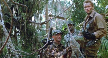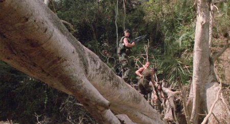 It’s odd to think now that Predator was made a mere 13 years after the end of the Vietnam War, less time than the War on Terror has been unfolding. Today, concerns of the post 9/11 age echo through a vast swathe of popular entertainments, but for a long time, understandably, Hollywood was more set on re-fighting Vietnam. It’s there in embryonic form in the despair of Jaws (1975) in the incapacity of technology to defeat primal fear and an enemy in its home turf, and in the scrappy outsiders versus the great technological empire of Star Wars (1977). But it bloomed properly with Aliens and Predator, tales of hapless warriors confronting their own impotence before an enemy that understands environment better and obeys a simpler impulse driving their defence of it. Predator outdoes Cameron’s film at least on the level of transmuting the imprint of that conflict on the modern American military mindset into a rough-hewn but entirely coherent little myth and then pointing the way forward to a new attitude.