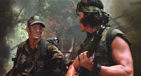 But Predator also had deeper roots. The storyline’s basic motif inverting the role of hunter and prey stands as a sci-fi take on Richard Cornell’s legendary short story , first filmed in 1932 as a precursor to King Kong (1933) by producing team Ernest B. Schoedsack and Merian C. Cooper and directed by Irving Pichel. The narrative form however more clearly recalls John Ford’s The Lost Patrol (1934), an essential work of early sound-era adventure filmmaking that, whilst set in the desert and depicting a French Foreign Legion squad’s slow decimation by Berber assassins, similarly turned the shadowy threat into a virtually existential enemy and left a solitary, stalwart hero to outwit his foes. The opening shots, featuring swaggering military hardware and bulbous ultra-masculine bodies filmed against blazing sunsets, push the idealising high-style tendency of recent movies like Top Gun or (both 1986) to a comical extreme, and for a purpose. McTiernan lumps the official paraphernalia of the evolving ‘80s aesthetic into one place and then sets about demolishing it. To watch Predator these days is to be struck by all the over-achievers in the cast: two future state governors and two notable directors emerged from the carnage.