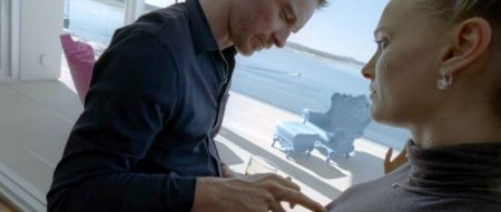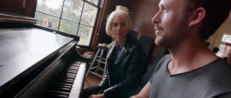 Nor is this just glorified star-fucking, for Malick has time for less spectacular confessionals, as he wrings from two of the prostitutes Cook hires, recounting their self-perceptions and experiences in hauntingly exposed terms, one young and fresh, the other older and feeling the stir of life’s colder winds. Malick’s familiar approach to utilising his actors, mining their most ephemeral, essential, and transient gestures and knitting them into the greater pattern of his editing, catches his actors both extremely wary, as Mara’s wide, alien glare absorbs her surrounds in suspicion and stoic remove, and also at their most unguarded, as when she launches into a dance in a bedroom, suddenly alight with the remembered pleasure of romantic moments. Gosling’s comedic gifts are allowed some leeway, as when he tosses away a terrible meal at some social shindig he’s been invited to. Val Kilmer appears in a bizarre cameo, part recreation of and lampoon on his famous role as Jim Morrison, as an aging rock star Faye is drafted into backing, who fires up the crowds with calculated barbarisms like using a chainsaw to cut a speaker in half, and scissoring off his own hair – pure incarnation of rock ‘n’ roll’s Loki-like, trickster god glee in all things antithetical and cathartically ruinous. Lykke Li has a substantial part as BV’s former girlfriend who’s become a jet-setting superstar, who visits him after he’s broken up with Faye and gives the siren call of joining her and drifting off into wild blue yonders. But BV, feeling the nagging tug of identity and responsibility as well as dissatisfaction with his life, instead retreats into his affair with Amanda, one that demands nothing but persistence in the moment. Faye seeks the same easeful time with Zoey, but her demanding, sensual, yearning face with its vulpine brows and teeth anxious for the red meat of love proves too potent for such a casual arrangement and an interloping straight lover, and the relationship quickly sunders. Meanwhile Cook’s indulgence of his many habits drives Rhonda to despair, and finally death, probably by suicide.