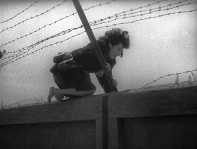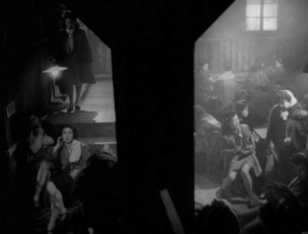 Copies of this film available in the West had some 20 minutes cut out, and this accounts for some abrupt continuity leaps and emphasises a somewhat episodic quality in the story. Women of the Night is also melodramatic by Mizoguchi’s standards, and in many ways it anticipates works like On The Waterfront (1954)—particularly in the finale—that used melodrama in service of social portraiture. Mizoguchi handles his exciting moments with hypnotic, yet rigorously simple flare: Fusako smuggling an illegal stock of morphine away from Kuriyama’s warehouse under the nose of investigating police; her later escape from the VD centre, hastily utilising an old bed and her belt to scale the barbed wire; Kumiko’s increasingly dreadful encounter with Kiyoshi and his gang; the final Calvary-like struggle between camps of prostitutes. But it’s also a tough, expressive, and deeply paradoxical film, like his later Sanshô the Bailiff (1954), an odyssey through degradation and a drama of family ties that are strained and warped, but finally not broken. The sisters fight to hold onto what little self-direction they possess. After learning of her betrayal by Kuriyama, Fusako tries to give her prostitution the veneer of revenge against men, knowing full well she’ll soon be a carrier of disease. Kumiko’s decision to join the waifs who just assaulted her possesses the same illusion of empowerment. When Natusko finishes up in jail with Fusako, she’s confident she’ll be released as soon as she undergoes a medical test, but the doctors find that Kuriyama has made her pregnant and also infected her with syphilis.