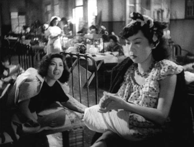 Mizoguchi charts the steady downfall of the sisters with remorseless logic, whilst also confirming how (comparatively) easy options consistently give way to bottomless pits. The extended scene of Kumiko’s degradation is rare in its concise nastiness: the way Kiyoshi forces drink down her throat and then eyes her like a cat does a chicken when it comes time to deflower her, and her own utterly clueless state afterwards, unsure whether she’s been loved or murdered after a fashion. The relationship between the sisters is the linchpin of the film, blending love and resentment, fear, and anger. Particularly fascinating in the way they alternate attitudes, Fusako and Natsuko take turns as the bitter, vengeful, self-destructive party, rebelling by assaulting their own bodies, their only remaining vessels for expressing hate. They evoke the sibling protagonists in Sisters of the Gion, but that film’s clean divide between the cynic and the idealist has been rendered much more blurred, inevitably, by a calamity that’s absorbed everyone. Fusako’s initial retreat into prostitution as her repudiation of dominance gives way to her attempts to drag a drunken and suicidal Natusko to the women’s refuge from the apartment Kuriyama left her with, but which she can’t afford. I love the moment when Fusako, trying to get Natsuko to cease her drunken lolling, strips the cigarette from her sister’s mouth, jams it in her own, and then manhandles her off the floor. Mizoguchi’s actresses smoke like those in modern films use guns. Equally amusing and acerbic is the scene in the VD centre when a representative of a “purity society” lectures a doctor on the virtues the women are missing out on and the collected whores lend their choral disdain of a ludicrous voice of morality and responsibility that echoes more concertedly and urgently from the doctors at the women’s refuge, with true moral weight but still without understanding that some things are unavoidable.
