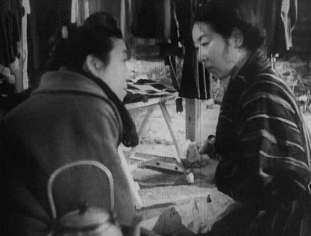 The sisters’ momentary prosperity and harmony are broken when it becomes apparent that Kuriyama is romancing both of them. Fusako, enraged, walks away from sister and lover and determines to become a streetwalker. Meanwhile Fusako’s sister-in-law, the still-adolescent Kumiko (Tomie Tsunoda), decides to leave home but stays in the slum and is dominated by her self-pitying brother, a black marketeer. But Kumiko, excruciatingly naïve, is take in by Kiyoshi, a petty thief who’s posing as a caring student. He fools her into coming back to the restaurant he and other young refuse use as an HQ, where he pours liquor into her, rapes her, and lets the young tarts from his gang strip her of her clothes: they offer her the choice of joining their number or going back home half-naked. Meanwhile, Natsuko, upon learning that Fusako’s been spotted amongst streetwalkers, goes to search her out and gets netted in a police raid. Natsuko encounters the embittered Fusako in a combination prison and VD clinic; Fusako soon breaks out on her own, whilst Natsuko is freed when Kuriyama comes to collect her. But he takes no responsibility for the baby and is soon imprisoned for smuggling morphine, stripping Natusko of support.