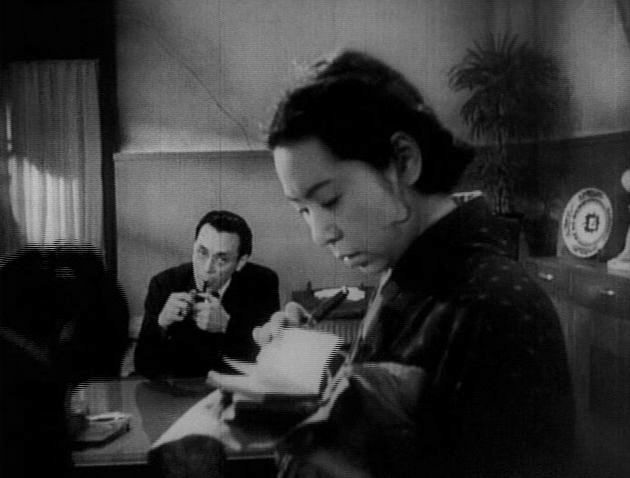 An irony of Mizoguchi’s life was that he was a rootless man who often took refuge amongst geishas, throwing into fascinating relief his constant refrain of worrying about the lot of women who took that line of work, or the less privileged one of prostitution nominally beneath it, because he was implicit in the power disparity he portrayed with such acid intensity. But he had also been deeply affected by he fact that his own sister had been sold as a geisha when he was a boy. The world of Women of the Night, an adaptation of a novel by Eijirô Hisaita, has lost the shape it had in pre-war works like Naniwa Elegy and Sisters of the Gion (both 1936). Everyone’s fair game now in a world in which vital loved ones have vanished, some to return, some forever. Fusako Owada (Kinuyo Tanaka) deals with both, having waited years to learn of her husband’s fate, living in the slums and resisting the suggestions of the woman who buys and sells clothing that she take up prostitution to provide for her consumptive baby son. She learns of her husband’s death from Kuriyama (Mitsuo Nagata), the owner of the trading firm he used to work for. Some months later, she encounters her sister Natsuko (Sanae Takasugi), who had gone to live in Korea as a colonist, where she was raped during the evacuation, and now works as a taxi dancer at a nightclub. Natsuko moves in with Fusako, who’s since landed a secretarial job at Kuriyama’s company, but whose son has died.