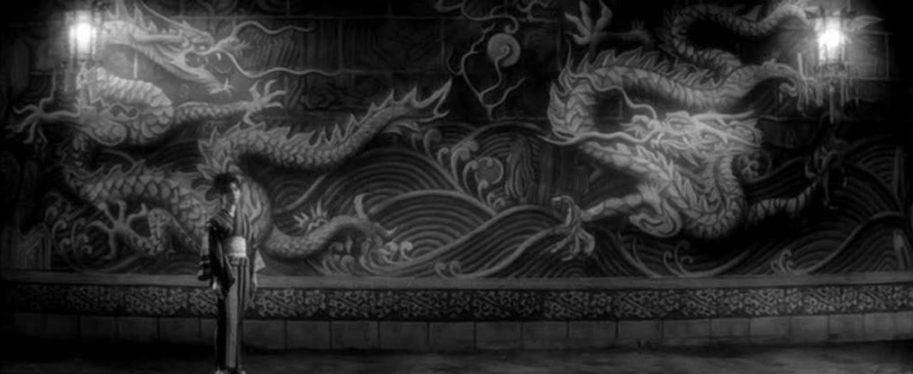 Harumi is a creature doomed to survive on the margins of glorious enterprises. The opening is both dazzlingly artful and entirely efficient. The stark opening titles show a woman struggling across a vast volcanic wasteland that stands in for the frontier world in China where the story mostly unfolds. A voiceover states: “Prostitute, harlot, strumpet—Harumi is one in Tianjin.” Harumi is first glimpsed before a huge mural of a dragon motif, dressed impeccably for her trade, suggesting at once a formal acceptance of her role but with vivid emotional turmoil within, as the narrator explains that her Japanese lover, Tomoda, has just returned from Japan with a bride.