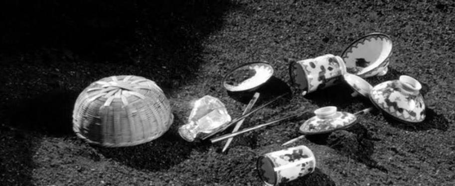 The small collective of prostitutes interests Suzuki in a fashion similar to Mizoguchi or Mikio Naruse, except rather than a street of shame, Suzuki offers an entire world of it. Suzuki refuses to cordon off the masculine and feminine trials of war and whoredom, instead seeing them both as entwined matters of life, death, and above all, human freedom. He gives time to the prostitutes’ banter, fears, their collective sensibility, their louche deportment, play, despair, and gossipy pleasure in their moments of rest, before the columns of soldiers are marched in to begin the exhausting business of assembly-line rutting. At first, the girls doubt it when they’re told they’ll all find sweethearts amongst the soldiers—“How will we find the time?” one asks incredulously—but later they’re glimpsed rushing out to find their loved ones when the soldiers return from the front. The world Suzuki creates is at once fervidly seamy and tangible, a place of unremitting squalor and decay, and yet also littered with expressionist beauty, the town and the environs of the brothels with their décor and fine architecture long since pummelled and brutalised. Concurrent to the central matter of Harumi’s attempted rebellion, Suzuki offers two different case studies in schismatic grasps for individual affirmation. An aged colonist comes to the brothel to arrange for one prostitute to marry his son, whom the father suggests is busy working out on their remote farm. Sachiko (Kazuko Imai) takes up the offer, as she’s the most eager—she’s lugged a tea set to this godforsaken place for a traditional ritual just in case she gets lucky. She ventures into the wasteland, only to return sometime later bedraggled and dejected, raving that the son was actually a lunatic as her tea set falls from its case and lies on the sand.