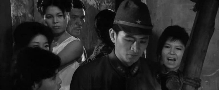 Mikami determines to die instead with a grenade Harumi has stolen for him, slave to his personal commitment to his soldier’s oath. Suzuki offers flash stills of Harumi as she wrestles with her lover; but realising she can’t prevent his death, she grabs him and waits with him until the grenade blows them both to pieces. What their end means, if anything, is pondered over in a sadly equivocal epilogue, as their memory is abused and condemned by officers, whilst the soldiers hold their personal opinions and grief inside. Suzuki moving through the ranks, allowing their thoughts to flow in voiceover, and suggesting that the grinding gears of official reality and private truth are beginning to break down the machine, even as Narita and the other Japanese commanders set out to pursue partisans: Narita’s superior muses worriedly that, “China is a large country,” as the soldiers march off into the dust. They are watched by the remaining girls of the brothel who have a funeral for what’s left of their friends, with the Chinese woman musing angrily over the cult of death that has claimed two new victims, no matter what private satisfaction they gained from it. By this end, the only thing that is not in doubt is Suzuki’s fulminating fury against the waste of life, the ignorance of militarism, and the strange power of love, even as it annihilates itself.